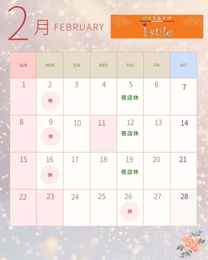 2月の営業日のお知らせ📢